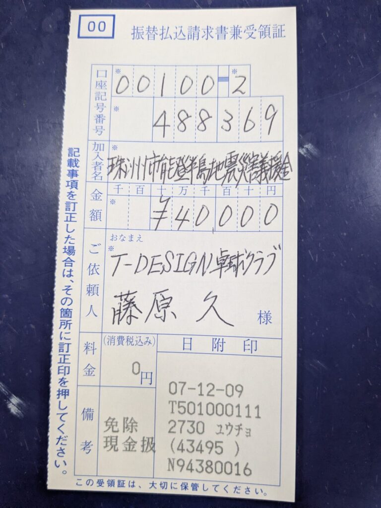 今年から始めた『能登応援交流会』 あきらめるな日本! 大谷選手に負けるな! がんばろう神戸をもう一度! という呼びかけ文と共に実施してきました。 参加費:1,000円の内、100円を義援金としてお預かりし、6月に10,000円を送金し、今回40,000円を送金しました。 ご参加いただいた皆さんに、改めて御礼申し上げます。来年から日曜は無くなってしまいますが、月曜・金曜 13:30〜15:00 で開催しております。これからは能登応援交流会(初心者教室🔰)として、初めて卓球される方にもっと呼びかけていきたいと思います。